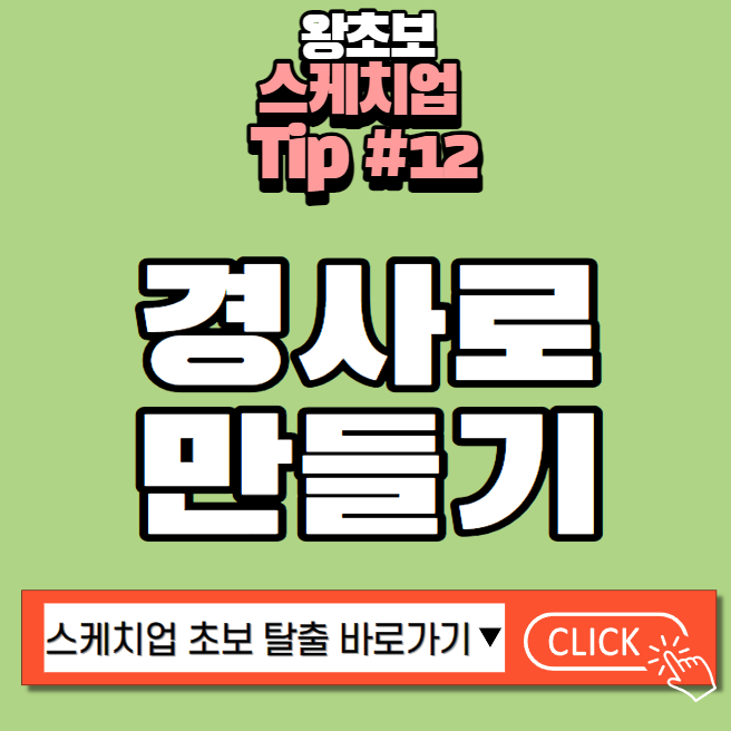 길이라는 것도 생각해보면 잘랐을 땐 4변이 존재하고, 각 선들이 하나의 선으로서의 역할만 해준다면 위와 같이 경사로 만드는 것이 쉽지 않을 까요? 이 원리만 아신다면 경사로 만드는 것이 정말 쉬워 집니다.