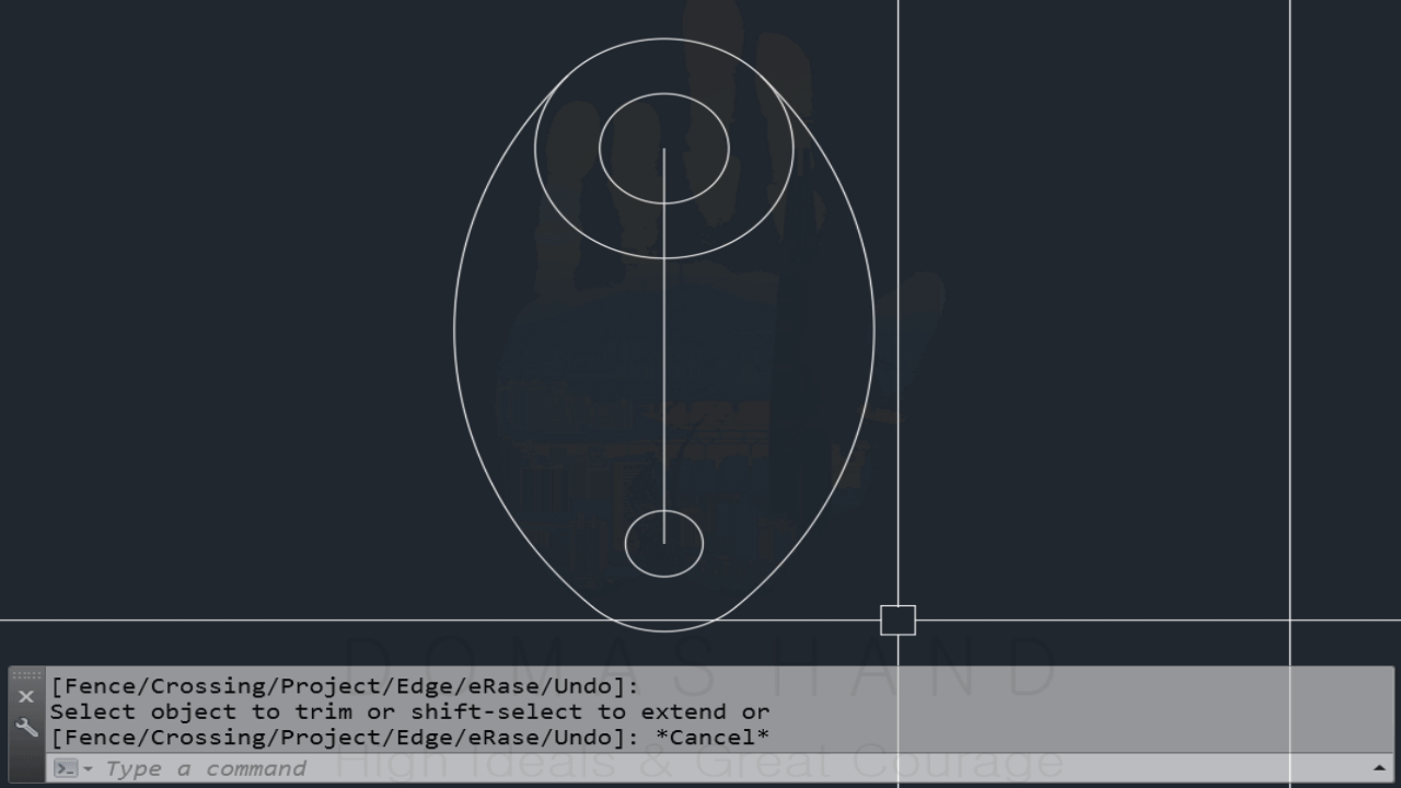 trim 명령어에서 기준으로 삼을 오브젝트가 애매하다면 오브젝트를 잡지 않고 다시 스페이스바를 누르시면 객체와 객체 사이의 선들은 전부 지울 수 있게 됩니다.